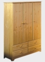 Nejprostornější model z řady šatních skříní klasického designu nabízí 3-křídlé dveře, šatní tyč 80 cm, 3 police na hloubku skříně a 4 prostorné zásuvky s kovovými pojezdy. Možnost dokoupení nástavce s policemi.